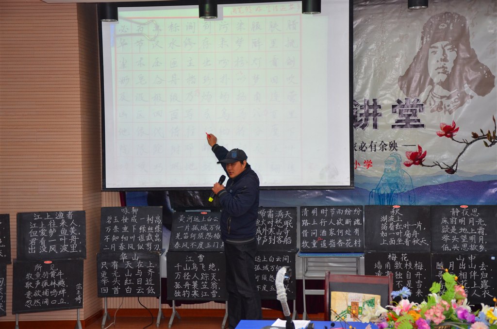 为了展示练习成果,解决教师在练习过程中遇到的问题,11月25日借教师例会之机,全体教师齐聚多媒体教室,开展了一场别开生面的书写展示。常州市书协主席王英杰老师通过一个小讲座、练习点评、示范演示,对部分老师在汉字结构的布局、组字规律、运笔规律、书写的韵味与法度等问题做了详细的指导,与会老师心领神会,收效甚大。