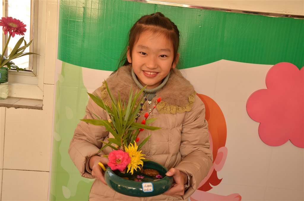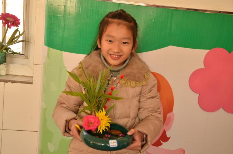 11月28日,我们三个班级的每位学生全员参与,以综合实践活动小组为单位,每一位成员忙着精心设计属于自己、属于自己小组的艺术品。“咔嚓、咔嚓”,普通的剪刀在他们灵巧的手里变成了点石成金的“魔棒”。或剪、或拉、或挽、或插,简单的花朵转眼间就被他们赋予灵性、饱含美感。有的像开屏的孔雀,有的像孩子的笑脸,有的象展翅欲飞的蝴蝶,一盆盆插花,或姹紫嫣红,或清新脱俗,各具特色,孩子们也喜气洋洋,对自己的作品 啧啧称道,评出了自己心目中的一等奖、二等奖、三等奖。