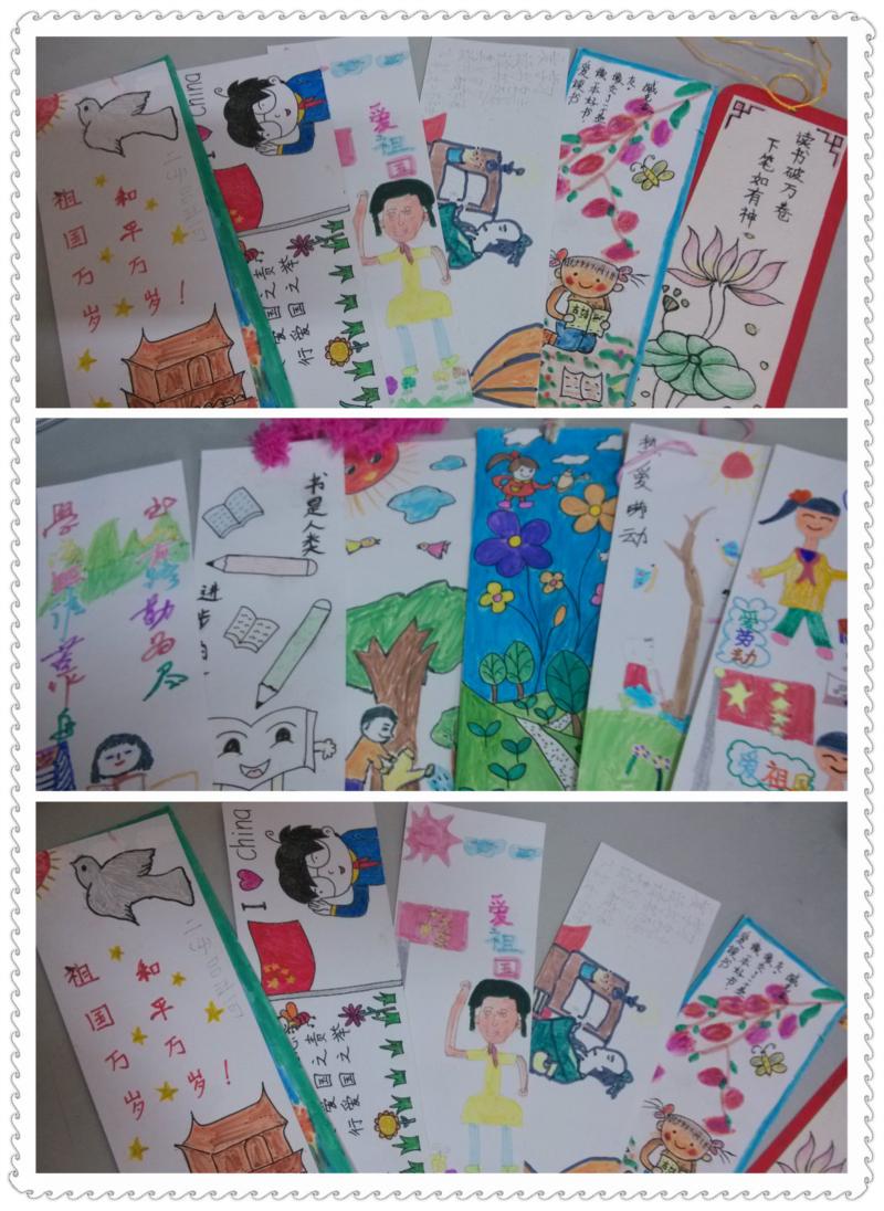 为了提高活动成效,让更多的孩子体会到成功的快乐,二年级组的老师们做足了各项前期准备工作:不仅提前收集了很多创意书签的图片,更是利用手工课对书签的内容、制作要求进行了精心指导。孩子们在老师的启发引领下,开动脑筋,发挥创意:有的上网搜索,在书签内容上精挑细选;有的又剪又刻,在书签形状上下足了功夫。动手又动脑,孩子们制作出了一张张精美的作品:有的写上了孩子最喜欢的读书格言,有的画出了孩子爱祖国、爱学习、爱劳动的片片爱心……孩子们交出的作品虽然稚气十足,却让大家感受到孩子们对书的热爱,对生活的感悟。