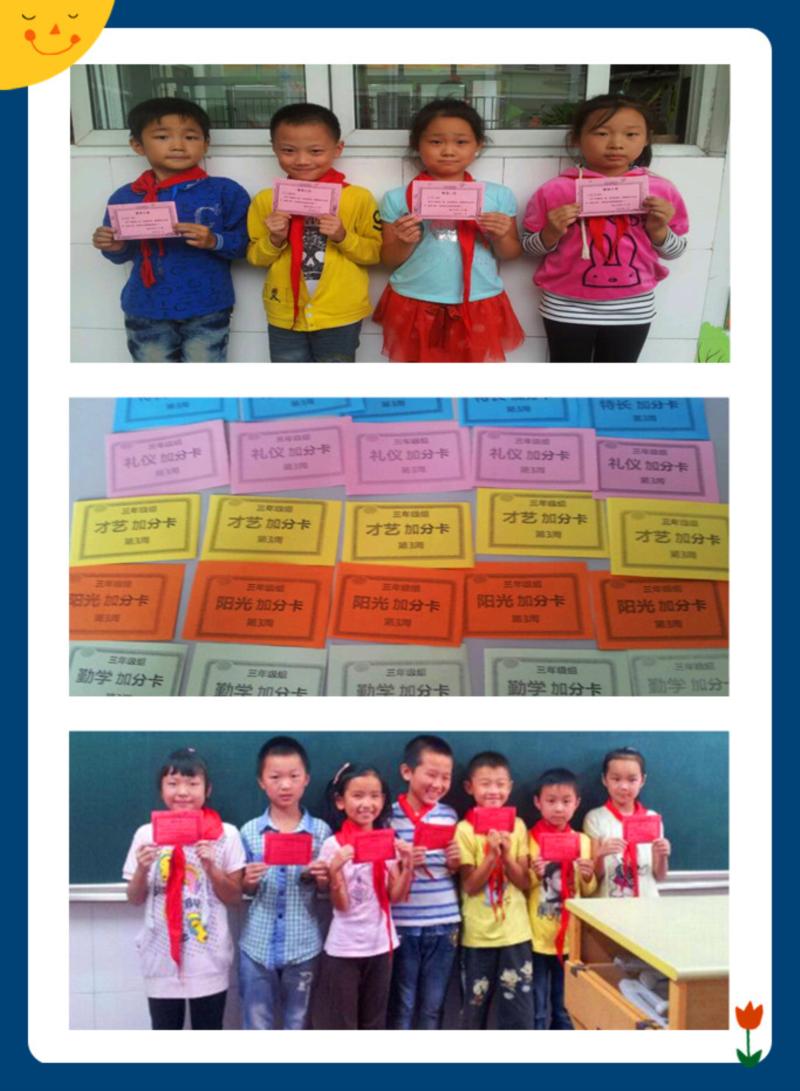 开学至今,我们三年级组的评价机制已逐步完善,最终确定为“心花朵朵卡”综合评价。加分卡内容根据学生在校的表现共设置5个内容:礼仪加分卡、勤学加分卡、阳光加分卡、才艺加分卡和特长加分卡,根据每周的单个内容卡的张数评选出“礼仪星”、“勤学星”、“阳光星”、“才艺星”和“特长星”。