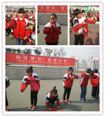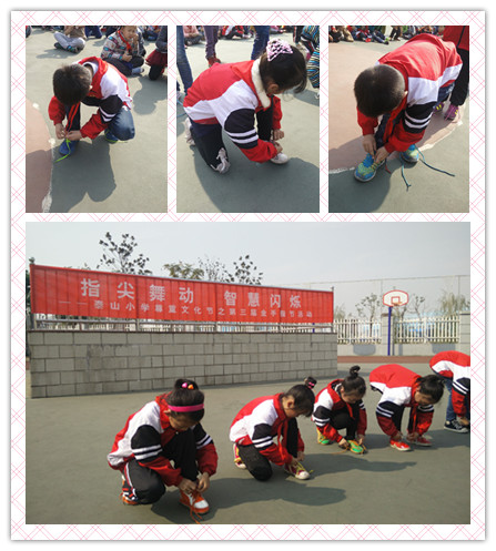 泰山小学的特色文化节——金手指节又轰轰烈烈地开始了,这次低年级组的“自理小能手”打前阵,11月22日中午二年级组就在操场上开始了“穿衣服、系鞋带”比赛。