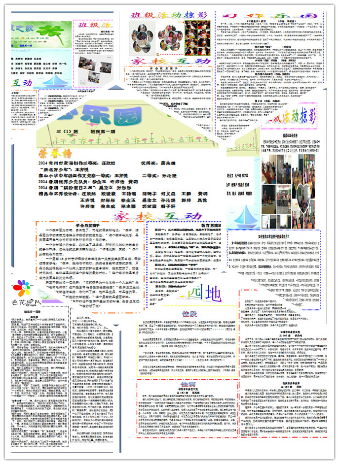 从最初的选材,到最后的定稿,倾注了每位老师的心血。班报上有特色活动的掠影简介,有学生的精彩习作佳句,有激动人心的光荣榜,还家校互动的推荐文章……可谓栏目缤纷多彩,吸引人眼球。