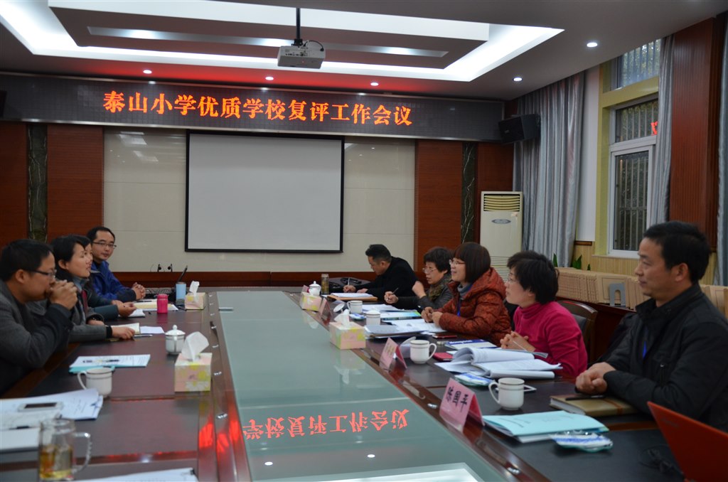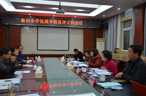 为期一天的现场复评,学校全方位向复评组专家展示了近几年在“尊重 和谐”理念指引下办学的实践与探索。在复评反馈会上,专家组对学校的发展进行了客观、详实的检查与评估,高度赞誉了学校在做大教育,有教育追求,有文化气场,积淀了丰实的能量,处处感觉到正能量的存在,充分肯定了学校五年来卓越的办学成果。学校在文化和环境、管理和常规、课程和活动、教师培养等方面多举措,有实效,办出了精致的教育。学校环境优美,文化气息浓厚;常规管理扎实,处处体现精细;课程序列清晰,学生活动灵动;团队洋溢 “气盛”,集聚正能量。最后专家组也为泰山小学能够走向更加辉煌的明天提出了宝贵的建议,希望学校能进一步改善办学条件,更换和添置必要的技术装备等。