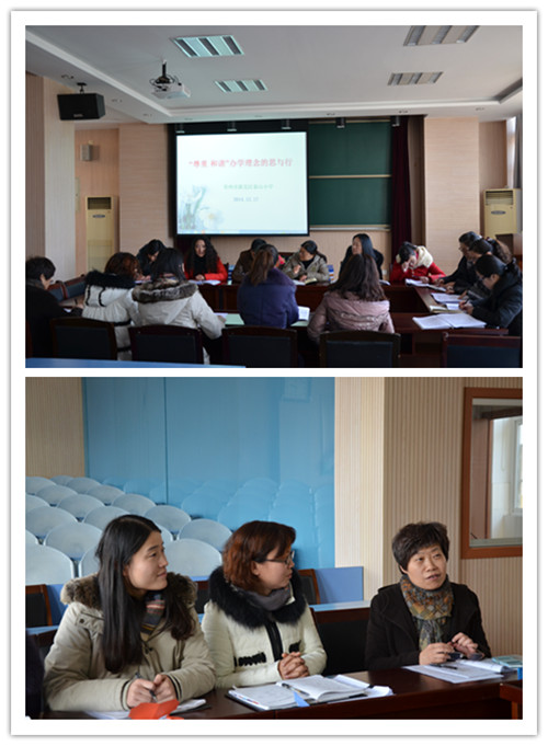12月17日,在金坛河滨小学李继锋校长的带领下,常州市优质学校复评组专家一行5人,对泰山小学进行了常州市义务教育优质学校现场复评工作。新北区教育文体局卞优文局长、臧亚东处长和吴伟副校长也一起参与了复评工作。
