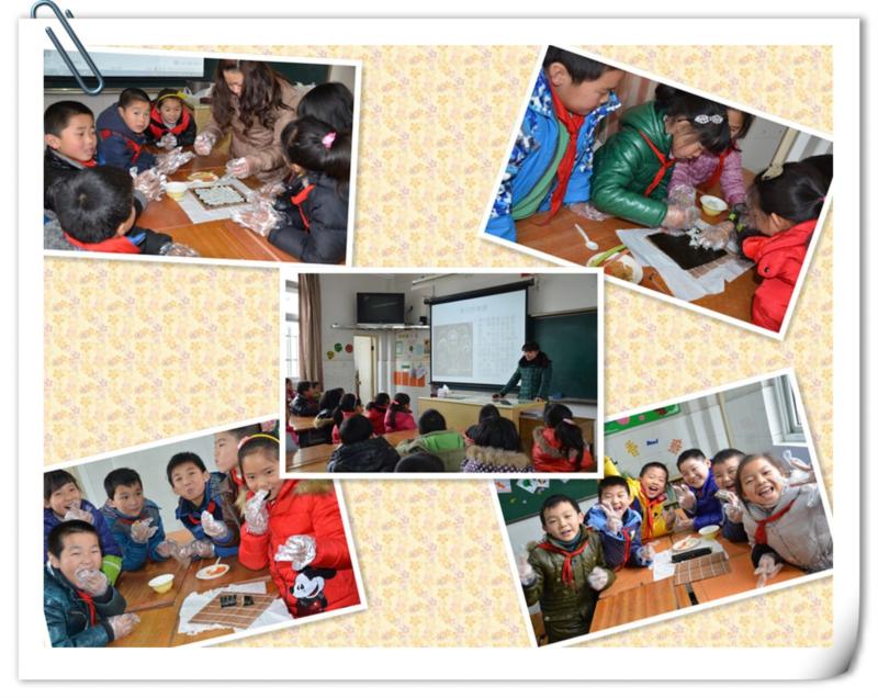 赵馨洁妈妈先给大家展示了各式各样美味的寿司图片,下面同学们都垂涎三尺。然后她又向孩子们介绍了寿司的由来和它的营养价值,孩子们想不到小小的寿司中还藏有这么多的学问。最后赵妈妈向同学们详细地介绍了寿司的制作步骤。同学们都听得专心致志,甚至还有同学拿出笔来记录,生怕待会做的时候忘记。