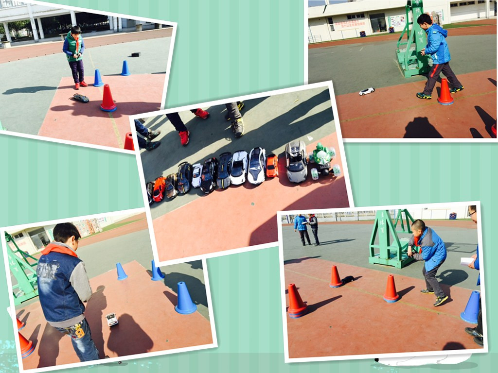 遥控汽车,主要测试学生驾驭时的反应力,虽然看似容易,但操作起来却会遇到很多意想不到的困难。由于同学们的车子大小不一,比赛主要采取障碍赛。由各班派出的小选手们都带着各自珍爱的款式各异、五彩缤纷的遥控汽车,科学老师和其他一些帮忙的老师热情地做着裁判工作,细致地为学生记录成绩。只见小选手们个个摩拳擦掌,跃跃欲试准备开始比赛了。有的同学操控着自己的遥控车,非常熟练自信。有的同学却在障碍赛中屡屡遭到挫败,但是他们不气馁,玩的非常尽兴。失败了的同学,不停地围观着其他同学的遥控车,想找一个好办法来提高自己的操控技能,为下一次的比赛作好准备。在比赛中,来自五年级的姜振宇、三年级的夏承宇等25名同学展现了他们完美的操作能力,荣获了本次比赛的一等奖。