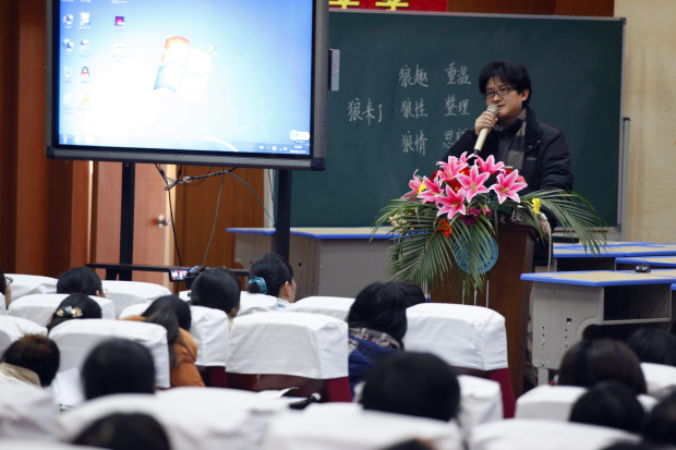 省教研室李亮博士也对活动给予高度评价,他从“课外阅读”与“课内阅读”概念界定的争锋,阐述了“把课内延伸到课外,把课外链接到课内”的观点,并从“时间上、空间上、内容上、方式上、主体上”解读了个人对“立体阅读”的理解。