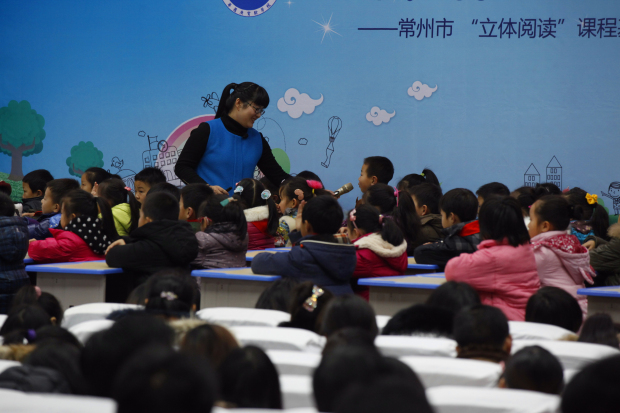 12月24日,由常州市教科院主办、金坛市华罗庚实验学校协办的“立体阅读”课程基地教学研讨活动在华罗庚实验学校报告厅开展。市教育局副局长常仁飞先生、省教研室李亮博士、各市区小语教研员和教师代表共300余人参加了活动。