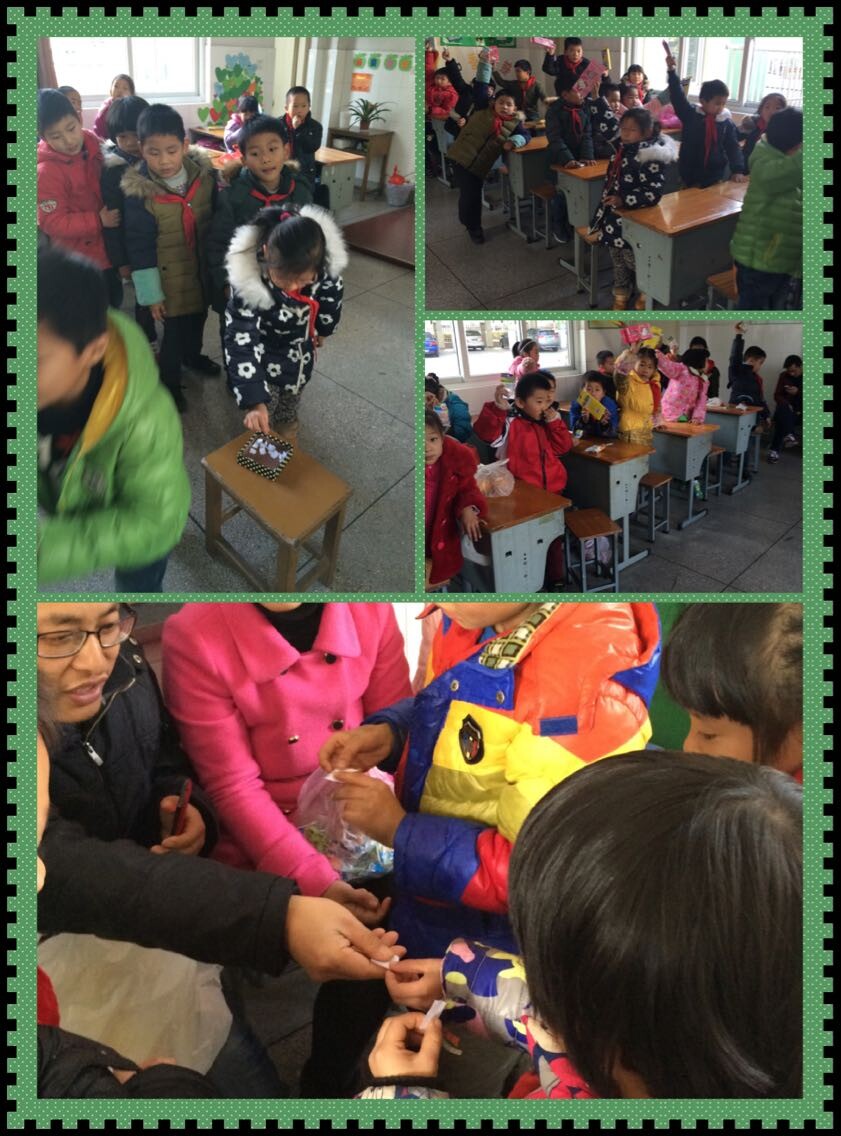 我们又长大一岁啦!今天中午12点我们在一(6)班举行了小学生涯的第一次迎元旦活动,活动开始老师给我们介绍了元旦的意义,小主持人宣告了元旦的开场白,第一环节:展示你我的风采,我们都踊跃在家准备好了自己的节目,有的人唱歌,有的人跳伦巴,有的人讲故事,我们合唱了《彩虹的约定》……第二环节是今天的动手展示,我们4人一小组,把带来的水果娃娃拼成一件件艺术品,看了我们都不舍得下口了。第三环节:游戏环节,我们边唱歌,边玩抢凳子,看着小朋友那拼命抢凳子的样子,我捧腹大笑。第四环节:爱心接力环节,我们班有个家庭比较特殊的孩子,当家委会的家长得知这样的情况以后,私下联系了很多家长,给孩子送来了很多衣服,在班主任老师和学校的努力下,三井街道的陈阿姨也给孩子送来了2套衣服和一张免费常州图书馆的借书卡,可谓是精神和物质食粮都有了,我们在主持人的结束语中,伴着新年的祝福,结束了美好的一年,展望具有挑战的明年。
