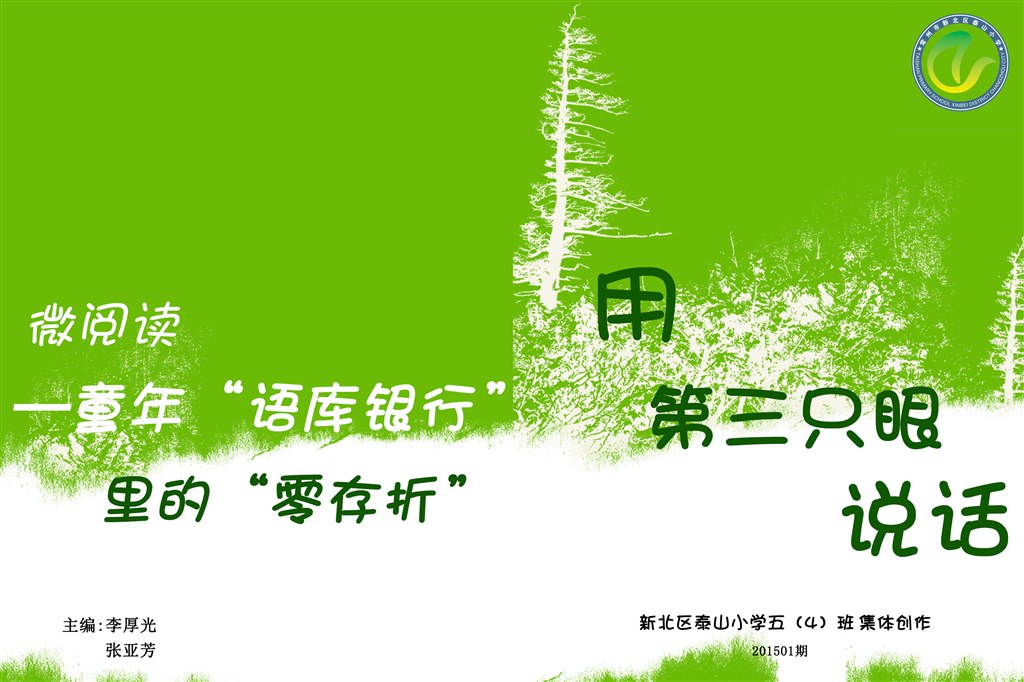 李老师组织同学们,用大家的智慧,合力出了一本书。书名叫《用第三只眼睛说话》。书不大,只有半本补充习题的大小,封面上印着令人眼前一亮的绿色图案。刚拿到书时,我觉得自己亏了,30块钱,这么小,还很薄。要是买小说的话,可以买两本呐!翻开书仔细阅读,才发现这本书虽然小,但浓缩的都是精华。令人想要快速翻阅,却总是不经意间被某一处文字吸引。仔细看着同学们大同小异却又十分具有亮点的见解,眼里闪过丝丝希望……