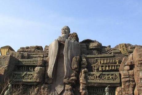 再往前走,穿过一座座山,就来到了传说中的“诸子百家园”。儒家广场上,孔子的巨型雕像高达17米,地面的竹简上写着《论语》,同学们也纷纷学着地上的72位孔门儒生,席地而坐,感受儒学文化的熏陶,做一回孔门生。除此之外,这里还建有一座孔子学堂,对孔子的生平与思想精髓进行介绍,这里最吸引眼球的就是“孔子机器人”,除了会眨眼、作揖外,还会直接与游客“对话”,如果想听听孔老先生的教诲,不妨来此体验一下。依山向前,抬头便看见了老子,一位古代思想家,也是道家之祖。你看,他神情严肃,双眼炯炯有神正视前方,一手掠起胡须,一手握住竹简,庄重的坐在由书做成的石凳上,似乎在在细细品味书中之道······“诸子百家园”中再现了春秋时期诸子百家彼此诘难,相互争鸣的空前盛况,带领我们来了一场学术穿越之旅。