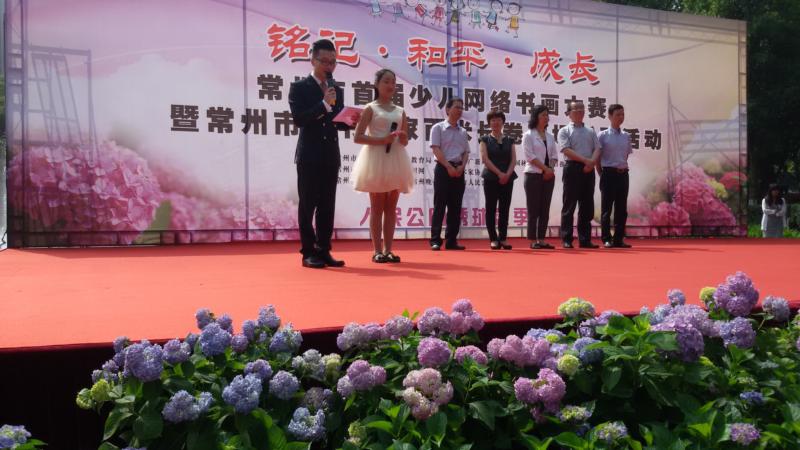 2015年是抗日战争暨世界反法西斯战争胜利70周年,为纪念这场伟大的胜利,激发少年儿童热爱和平、热爱祖国、热爱家乡的民族感情,5月31日上午,由常州市文明办、常州市教育局、常州市文广新局、常州市园林局、常州市日报社主办,常州市文化馆、常州网、常州市美术家协会承办,常州市刘海粟美术馆、常州晚报、常州市人民公园协办的“常州市首届少儿网络书画大赛暨常州市小书画家百米长卷现场书画活动”在人民公园举行。我校10余小书画家在美术组老师的带领下参加了此次活动。