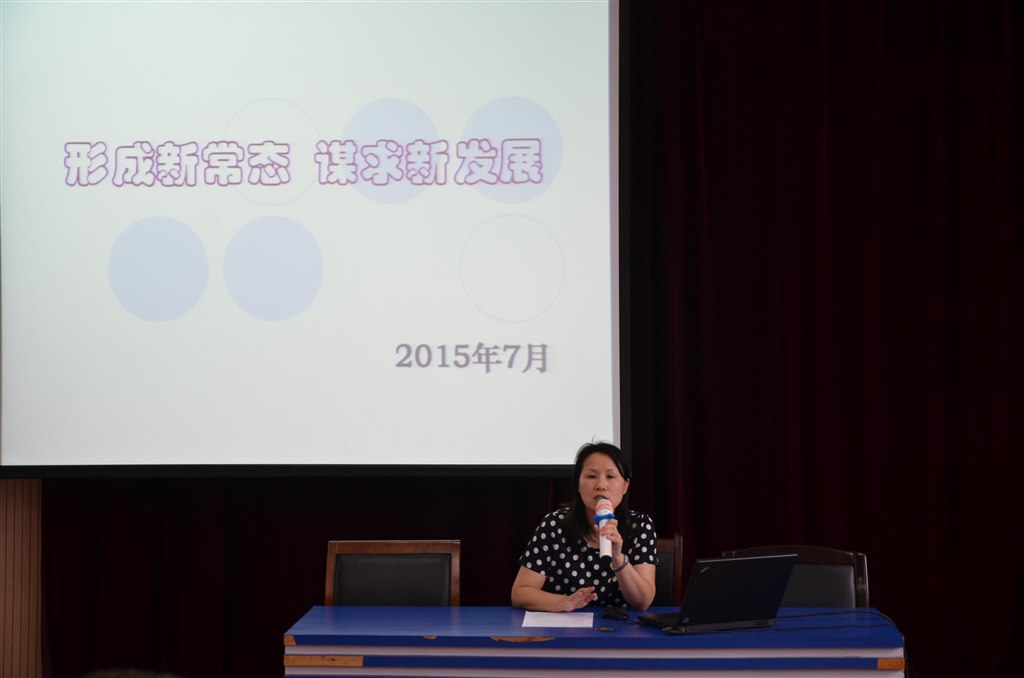 最后沈校长作了“形成新常态 谋求新发展”学期工作总结,从管理新常态、教师新发展、课程新进展、德育新亮点、后勤新亮点五个方面对学校工作进行了全面深刻的剖析,引领老师们直面不足,认准目标、奋起向前,鼓励各个条线负责人、各位老师在暑期里积极学习、认真反思、主动规划,努力为学校新学年的更好发展出谋划策、倾力而为。