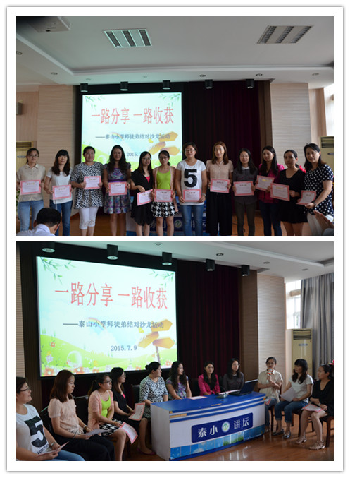 7月9日下午,泰山小学全体老师在多媒体教室召开了期末总结会暨年度优秀团队颁奖仪式、优秀师徒沙龙活动。