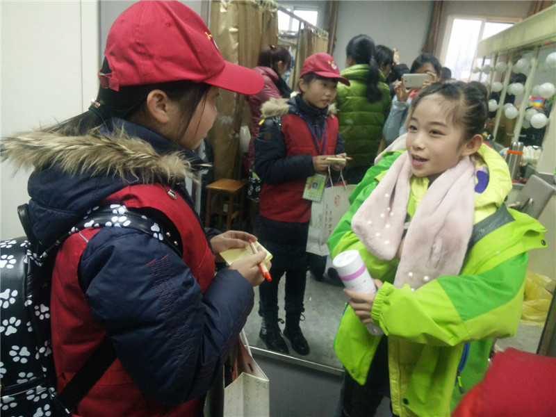 节目结束后,小记者到后台采访部分演员、家长、指导老师及工作人员。从采访中得知,短短一个半小时的节目,却倾注了多少人的心血:小演员自身的坚持努力,家长的陪伴鼓励,老师的精心指导,工作人员的后勤服务……台上一分钟,台下十年功,舞台上的视觉盛宴来自舞台下的艰辛付出,小记者纷纷感叹不枉此行!