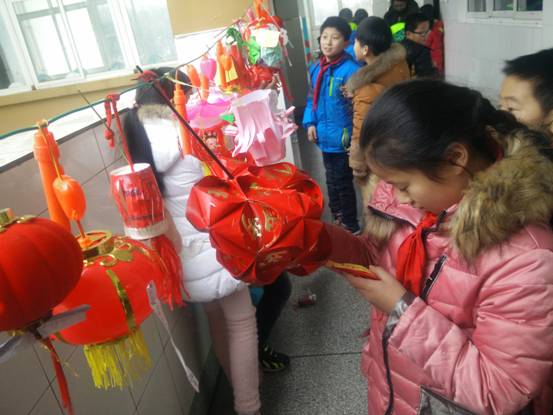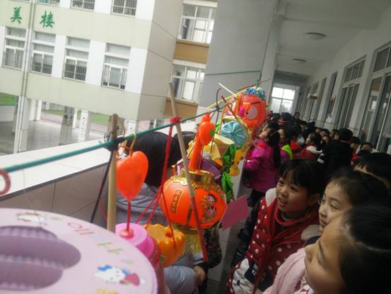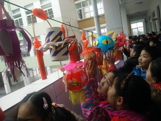 元宵佳节,灯笼便是必不可少的了。老师耐心地讲授灯笼的制作过程,孩子们学习地津津有味。下午,同学们也纷纷拿出了自己制作的精美的灯笼,将它系在教室走廊的长绳上,赏灯笼、猜灯谜、评选做得最精致的灯笼。那一个个造型各异、小巧玲珑的灯笼,瞬间让每一间教室都变得喜庆起来。