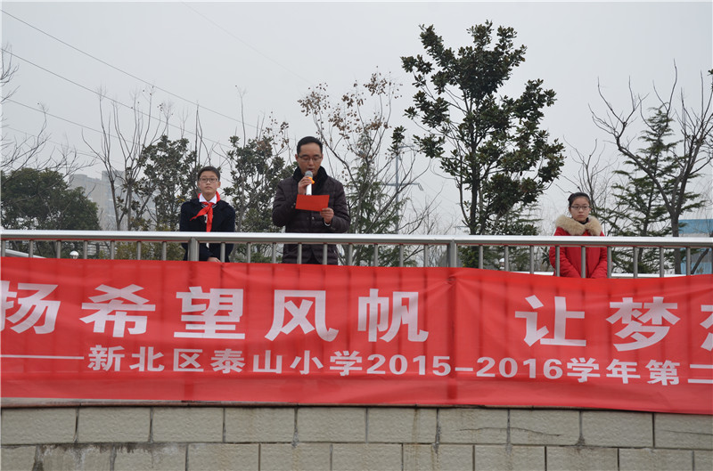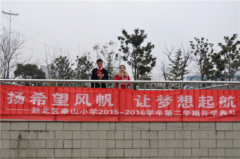 三羊辞旧岁,金猴送春来。经过热闹愉快的一天期初课程后,2月23日,在泰山小学操场全体师生参加了2015~2016学年第二学期开学典礼。