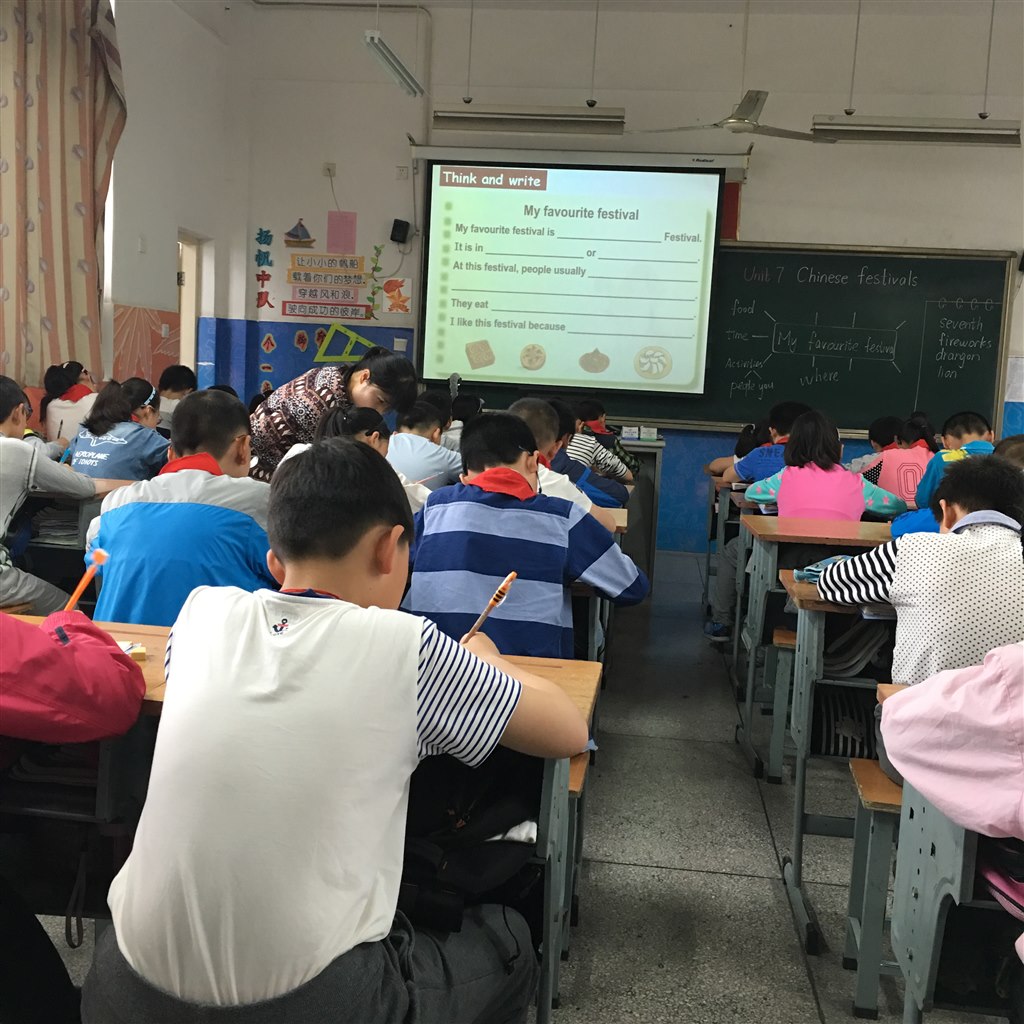 首先,张燕老师在五(5)班给大家上公开课,她上的课题是《 Unit 6 Chinese festivals》checkout板块。Checkout time是单元的检测板块,其作用是帮助学生综合复习、巩固本单元所学的内容,培养学生听、说、读、写的能力。张老师在课堂上对整个单元的内容进行了梳理和复习,并且有意识地拓展了一些节日的活动和元宵节。她利用思维导图,引导学生归纳文章结构,然后是学生的仿写活动。并用Miss Zhang’s favourite festival,对文章进行润色,学生进行二次修改,师生一起进行评价。整堂课板块清晰,而且张老师英语知识面广,口语流畅,并充分利用肢体语言和眼神来带动学生,整节课课堂气氛很好,学生积极回答问题,可以说是一堂较为高效的课堂。