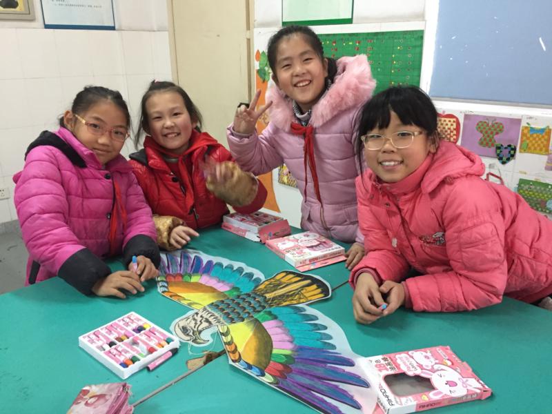 接着,各班学生分成若干小组,在美术课上发挥各自的想象力与创造力。课上,孩子们激情高涨,在空白纸风筝上描绘着希望,描绘着梦想,描绘着未来。