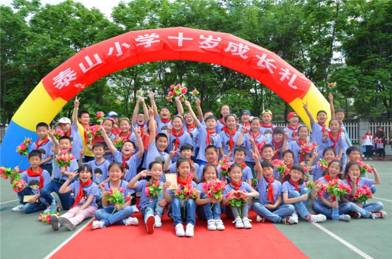 十岁——漫长人生中一个新的里程碑,它意味着孩子们即将告别幼稚的童年,开始迈入憧憬无边的少年时代。为了响应教育厅“八礼四仪”的号召,为了让孩子记住这个值得纪念且有意义的生日,让孩子们学会感恩、懂得分享,理解父母的养育之恩、师长的教诲之恩、朋友的帮助之恩,2017年5月12日下午,伴着雨转晴后的淡淡微风,泰山小学“沐浴阳光,快乐成长”三年级十岁成长仪式在学校操场隆重举行。