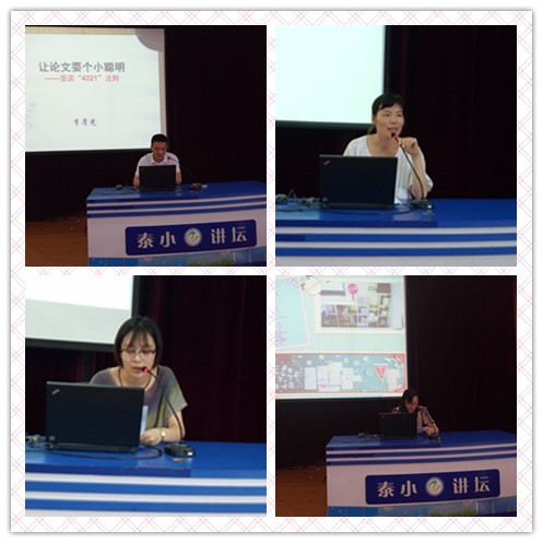 接着是金点子分享会,由几位班主任代表发言,金慧姝和孙海楠老师讲了跟学生沟通方面的《做一名快乐的班主任》、《关注学生心理健康》;王燕讲了和家长沟通的注意点;马老师利平老师《让中等生悄然“绽放”》视角独特,关注了班里最容易忽略的中等生的发展;万蓉、李叶男、尚衍英老师都是低年级老师,向大家分享了班级管理和评价制度的金点子;孙萍老师《寻找爱的瞬间》向大家介绍了三年级成长礼的爱的故事。各位班主任多角度总结了自己一学期以来的工作,各有各的智慧,为泰小学生在这块尊重的土壤里有个性地和谐发展奠定良好的基础。