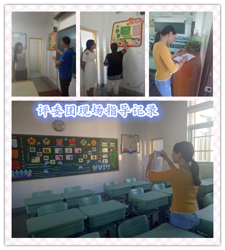 前期德育处将“洁美”教室评比方案挂校园网,辅导员按照要求认真完成各项布置,然后由“德育评比团”进行检查、评比,成员包括1名行政、1名年级组长,1名副班主任,每个考核组负责对该组各中队文化建设和中队卫生进行考核,最终评定“洁美教室”。