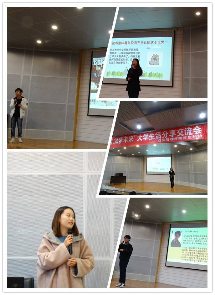如果说处处彰显文化,充满生命力的校园让同学们流连忘返,那么交流分享活动则点燃了他们求知的热情。此次共安排四位学生代表分别从学习、社会实践、创业创新、文娱活动四方面讲述了他们的大学生活。听着大姐姐大哥哥们自强不息的成长史和丰富多彩的大学生活,他们的内心不禁产生羡慕之情。“你们平时遇到学习难题时是怎么做的?”“怎样才能上大学”“你们将来有什么打算?”……这一个个困惑如珠炮般抛向大哥哥大姐姐们,四位学生代表都一一作了回答。同学们从他们的回答中获得的是满满的正能量:要珍惜时间,进行广泛的课外阅读,学会感恩生活……