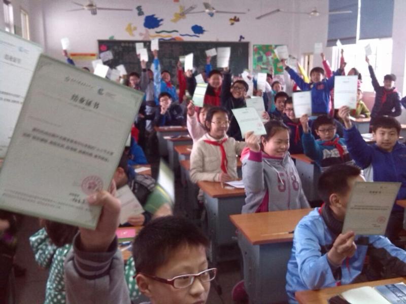 首先宣讲员杨老师给每人准备了一份特别的礼物——一本科普书籍《水与生命》。接着她结合PPT从水的特性、水与生命、水与生活和节水小窍门四个方面给孩子们介绍了相关的水知识,在他的帮助下,让学生明白了水对于生命的重要性,知道什么水适合人体饮用;水与生活的关系,怎样才能做到安全饮用水等。以常见的几种包装饮用水为例,为学生们做了利用PH试纸来判断常见的几种包装饮用水的酸碱性的演示实验,引起了同学们极大的兴趣。生怕学生看不清楚实验的结果,选了两名小学生端着水杯在教室里循环给大家观看。大家知道了天然的水源,必然需要森林植被的涵养。“原来我以为喝纯净水是最好的,现在才知道人体需要从水中吸收矿物元素,喝纯净水反而会让体内的矿物元素流失,我以后不能只喝纯净水了。”同学们听完杨老师的讲解后议论着,还给学生颁发结业证书,并鼓励大家在课后完成结业证书背面的作业,回家后实施节水计划,并带动周围的人一起实施节水计划。