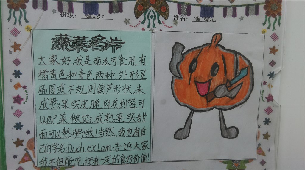 蔬菜的奇妙之旅——蔬菜名片 四(5)班袁雪儿