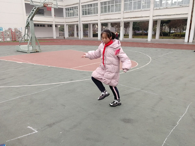 一分钟单脚踢毽是健儿们新接触的项目,但大家学习兴趣浓厚,向自己的妈妈、奶奶等长辈好好请教,今天也在操场上赛出自己的最好成绩。