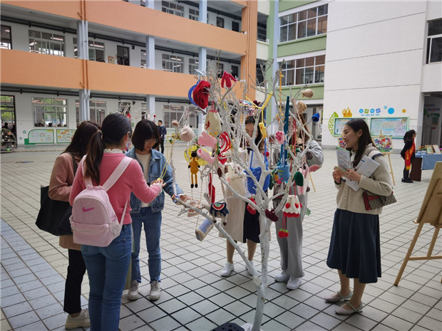 课程展示区,“个性纽扣画”“缤纷马赛克”“活力三角插”等10多项课程成果精彩亮相,在小讲解员们自信大方的讲解中,老师们了解到了各项作品的创作背景、创意思路,以及创新小故事,纷纷点赞泰小学子的巧手慧心,感叹金手指特色课程育人无痕。