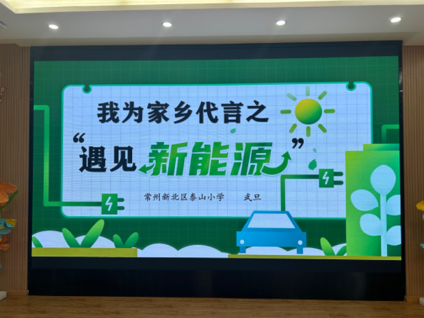 让我们先来走进武旦老师的微课堂《我为家乡代言之遇见新能源》,武老师带领我们一起进入到新能源之都——常州,通过知识抢答、即兴辩论、展示手抄报等环节生动有趣地让我们对常州的新能源大体情况有了进一步的认识和了解,让学生近距离体验到新能源给我们生活带来的改变和绿能。