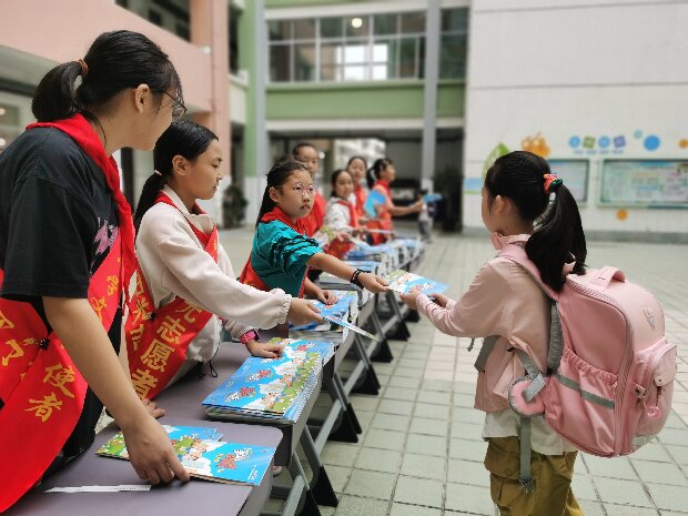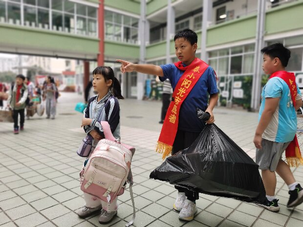 9月26日当天,泰小全体队员参与了废纸捐赠活动。明媚的阳光下,小队员们神气活现,或扛或拎,带着自己收集的废旧书刊、报纸、废硬纸板等走进校园,在志愿者的引导下将物品分类摆放,喜气洋洋地兑换到专属家校联系本,整个过程井然有序。