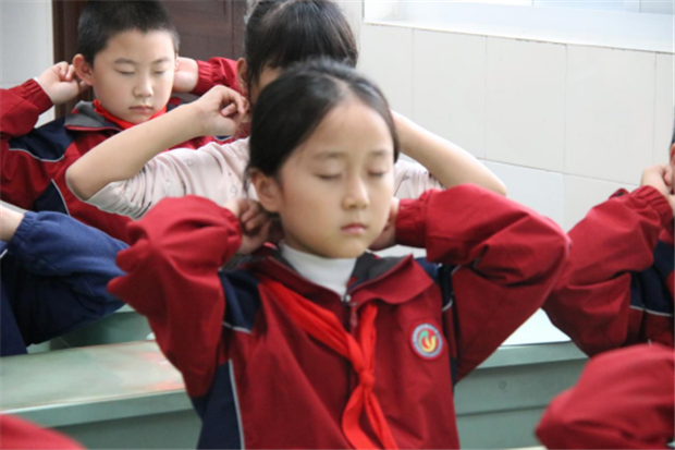 与此同时,在教室里进行的眼保健操比赛也在紧张有序地开展着。同学们坐姿端正,随着悠扬的音乐,准确地按压着眼部穴位。他们的动作轻柔而熟练,一丝不苟地完成每一个步骤。从他们专注的神情中,可以看出他们对保护眼睛的重视。
