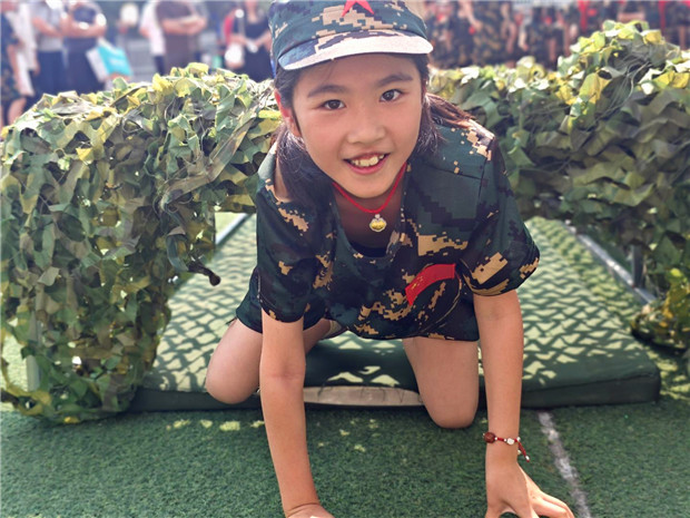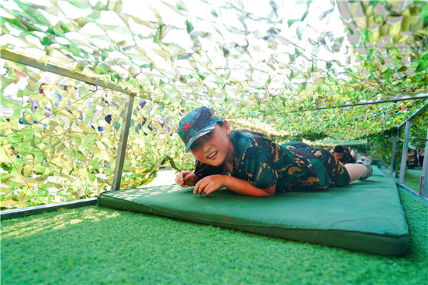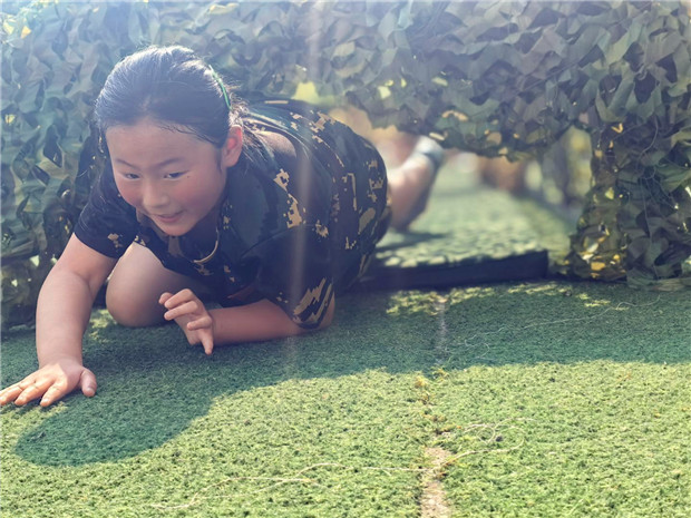 在低姿爬网挑战区,一张布满网孔的绿色大网仿佛一条 “火线” 等待着他们穿越。随着教官一声令下,孩子们迅速压低身子,手脚并用向前爬行。每一次挪动,都是对体力与勇气的双重考验。孩子们化身勇敢的小战士,向着目标奋力前行,诠释着永不言弃的精神。