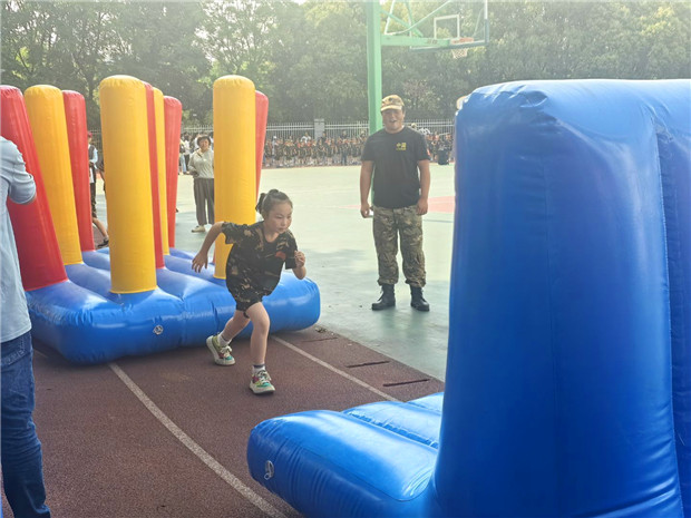翻越障碍墙、跨越模拟壕沟、钻过狭小管道等一系列关卡,如同等待攻克的堡垒。整个赛道上,加油声、呐喊声、欢呼声交织成一片激昂的乐章。孩子们在关卡间穿梭,在协作中奋进,不仅锻炼了应变能力,更深刻体会到团队的力量,在这场热血征程中收获成长的勋章。