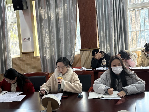 会议伊始,武旦老师作学科总结。我校语文组秉持“学为中心”理念,以“研、规、赛、思”为抓手,交出亮眼答卷。教研层面,构建“研、学、教”一体化模式,省级课题稳步推进,6项微课题顺利结题,多节校级、区级公开课与专题讲座落地生根;教师队伍成长显著,多人获评市级骨干、晋升职称,多篇教学论文与案例在各级评选中获奖。活动载体不断丰富,作文竞赛、“少年讲书人”等活动点燃学生热情,2名学生在新北区作文竞赛中斩获佳绩;四门校本课程与跨学科融合课程,让语文学习走出课堂、链接生活。同时,通过强化新课标学习与精准复习,筑牢教学质量底线,实现师生协同成长。